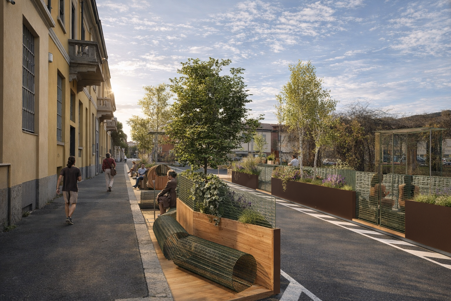 Da qui è nato un percorso di trasformazione dello spazio pubblico, fatto di piccoli interventi: un nuovo attraversamento pedonale e nuovi spazi per sostare, incontrarsi e vivere la strada in modo diverso.