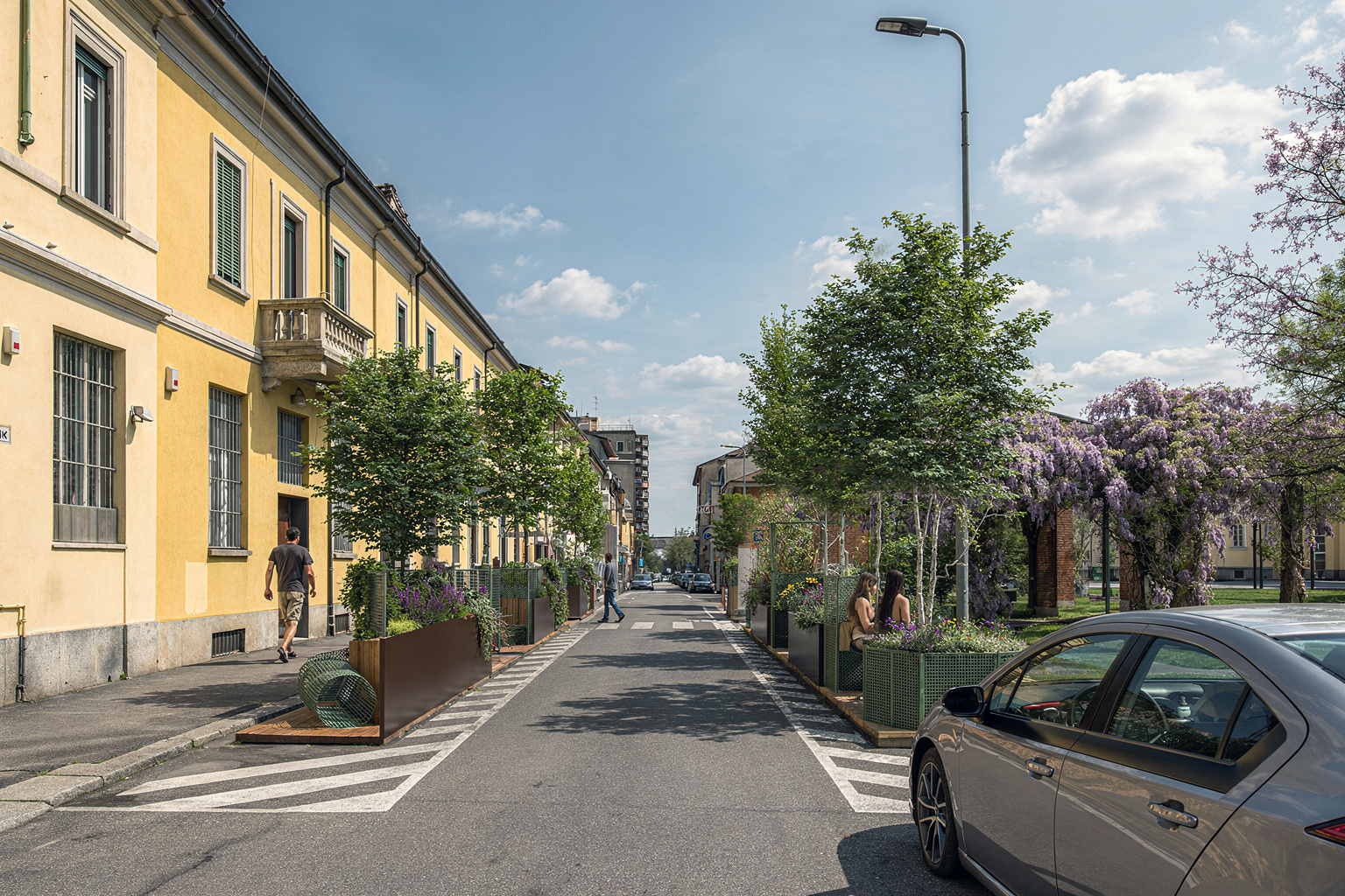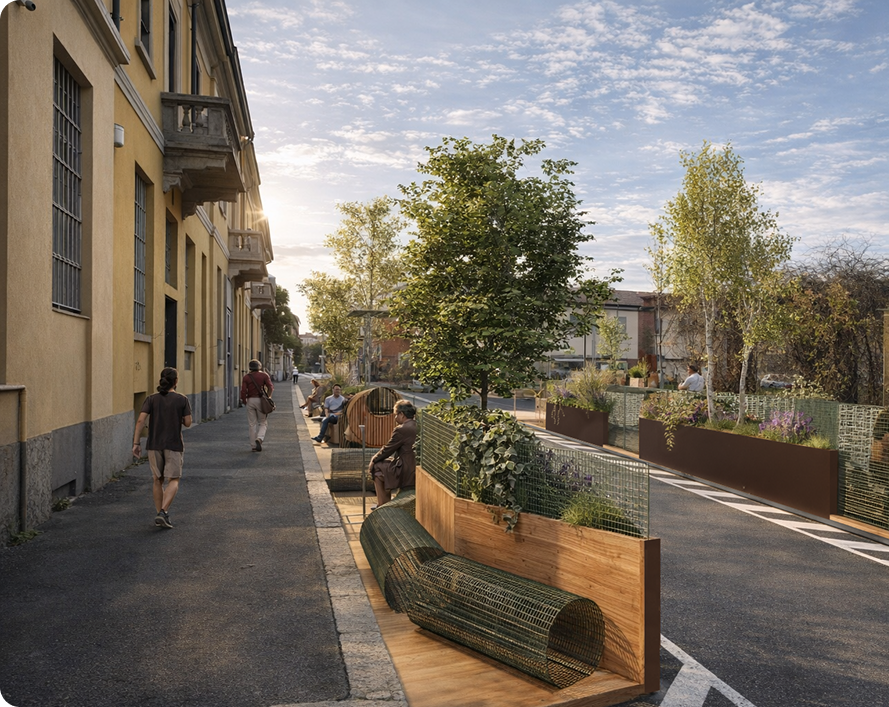 Da qui è nato un percorso di trasformazione dello spazio pubblico, fatto di piccoli interventi: un nuovo attraversamento pedonale e nuovi spazi per sostare, incontrarsi e vivere la strada in modo diverso.